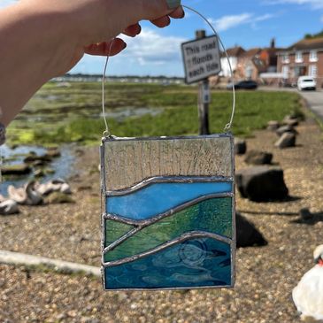 Living in the Hampshire countryside inspires my creativity, providing the perfect backdrop for my work. The peaceful surroundings help me focus on crafting imaginative designs. I carefully select and arrange different colours and textures of glass, then use a microwave kiln to fuse them quickly—unlike traditional kilns that take hours.